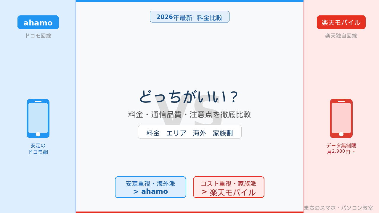 【2026年最新】ahamoとは?料金・プラン内容・向いている人を総まとめahamoとはどんなサービスか、料金・プラン内容・向いている人を2026年最新版でまとめました。ドコモのオンライン専用プランを初心者向けにわかりやすく解説。乗り換えを検討中の方の入門ガイドです。...