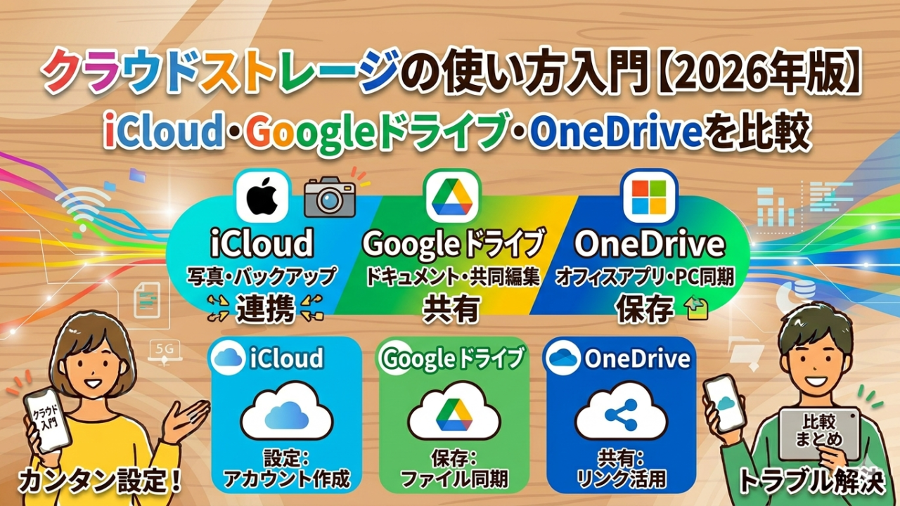クラウドストレージの使い方入門【2026年版】iCloud・Googleドライブ・OneDriveを比較
